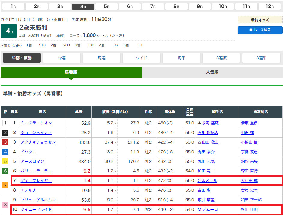 東京4レースの予想は馬単6点予想。