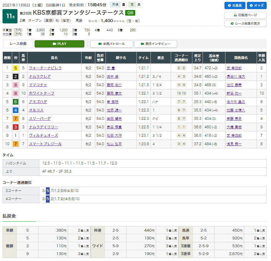 【11/5㈯ 阪神11R ファンタジーS】