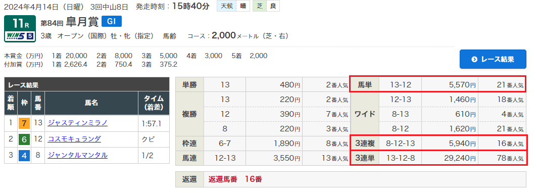 馬単55.7倍+3連複59.4倍+3連単292.4倍を1点千円の馬券代で40万7500円獲得!