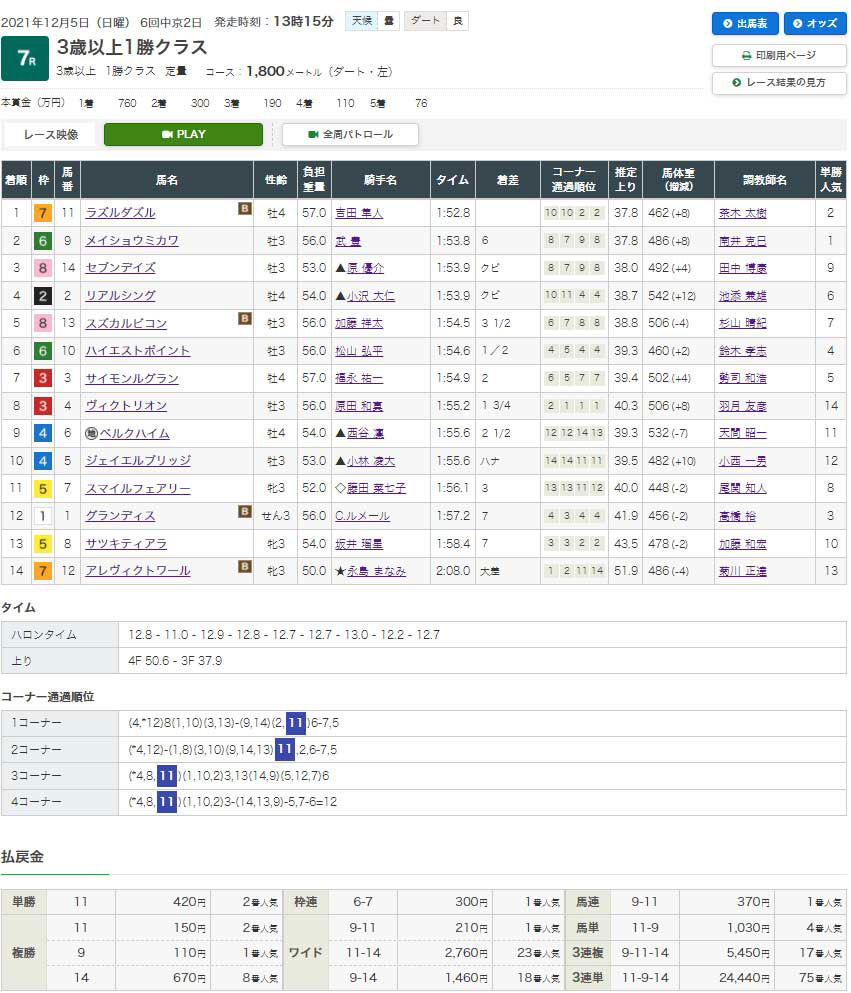 【検証2レース目:12/5 中京7R3歳以上1勝クラス】