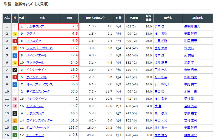 選んでいる馬の人気を見てみると確かに大穴の馬を馬券に絡ませているわけでもなく、確かに選んでいても8番人気と中穴までの馬で予想されている馬券でした。
