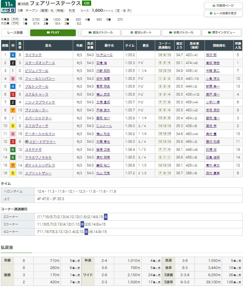 2番人気と6番人気の2頭選択だが、⑧ライラックが勝利し不的中確定!