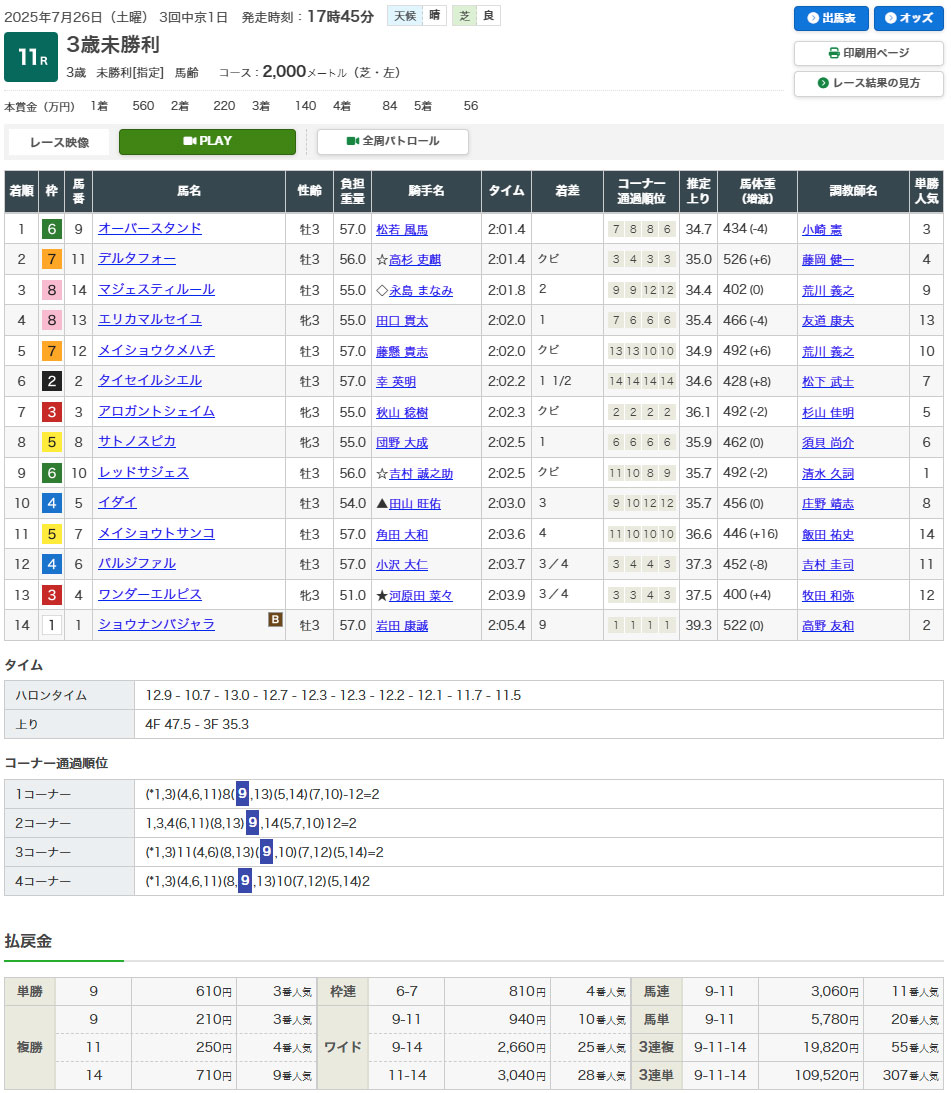 開幕週は馬場にダメージがなく逃げ・先行が粘り馬券内という事も珍しくないデータだけでは傾向を読みづらく予想難易度があがりますが結果はというと