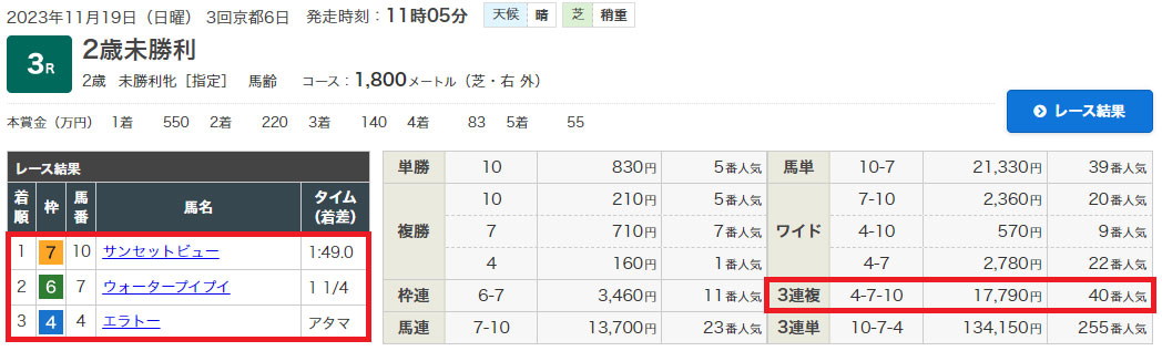 偶然かもしれませんが、今回も7番人気馬は消し予想でした。
