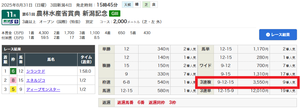 8月31日・新潟11レース 新潟記念(GⅢ) 3歳以上オープン 芝2000m
