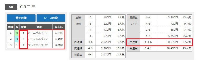 3連複がものすごい配当です。これは買い方をワイドに切り替えてよかったです。
