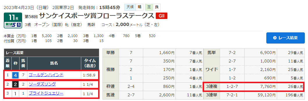 4月23日・東京11レース フローラステークス(GⅡ) 3歳牝馬オープン 芝2000m