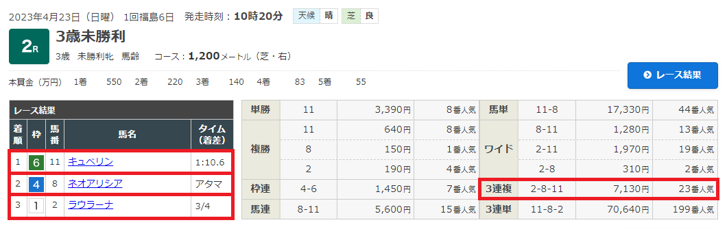 4月23日・京都5レース 3歳未勝利 芝1600m