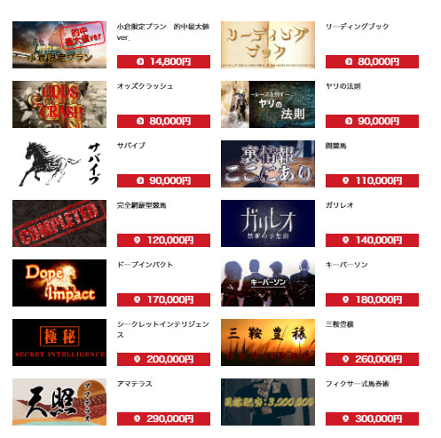 高い情報では300,000円もします。安くても14,800円で次に安いのが80,000円と高額な予想ばかりで会員の方に良心的とは言えませんね。