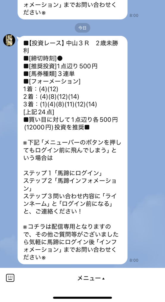 まじでエグイ的中貰えました!! リポートの管理人さんもLINE限定のガチ予想で京都大賞典3連複当ててたけど上位互換といってもおかしくない3連単予想でブチ当ててました、競馬好きな人とか競馬関係に携わってるとこんな大荒れレースさらっと当てるんかい?! 470万5500円ものちょー大金ゲットです! 追記、普段やらないけど土曜日キャリーオーバーしてたWIN5は馬蹄さんの予想に乗ったディープモンスターだけ当たりました(笑) 御見それいたしました、