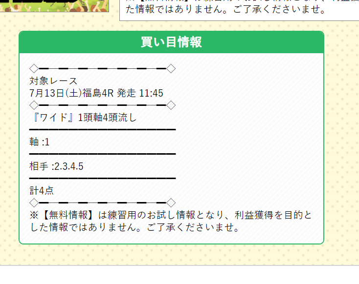 ここは閉鎖しましたね 以前、有料プランに参加して、全鞍全滅でした それで退会しますって送ったら退会させてくれなかったんです いい加減な情報を出すからこうなるんですよ 因果応報ってやつですね どうせつぶれるんだから退会させろって思いました