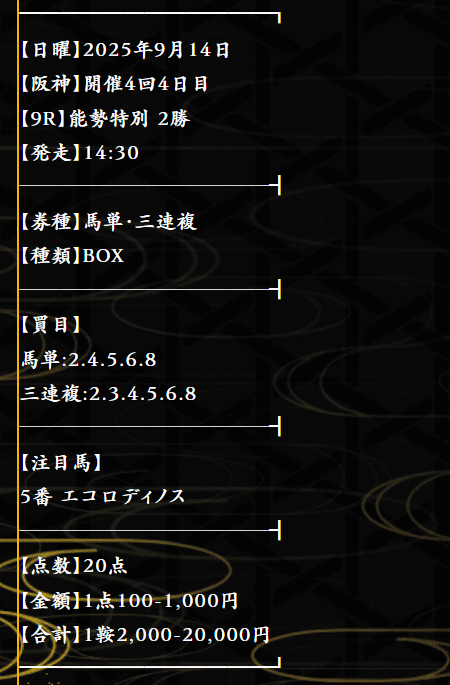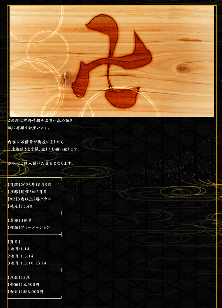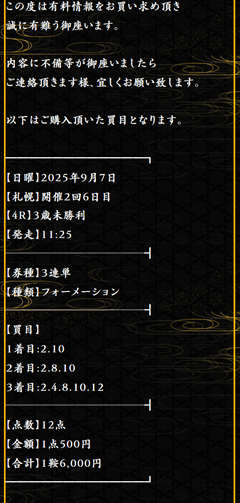 約束された万馬券の買い目が届く!