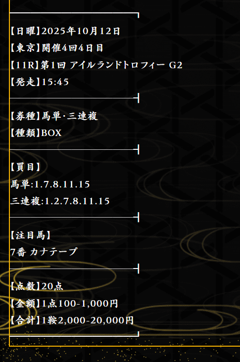 アイルランドトロフィー無料予想2-7-15的中!