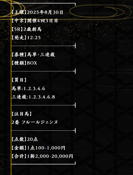 中京の新馬戦【無料情報】馬単40.7倍、3連複33.8倍ダブル的中。