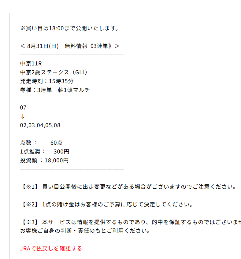 馬券もレースもこの予想のおかげで楽しめました!!!