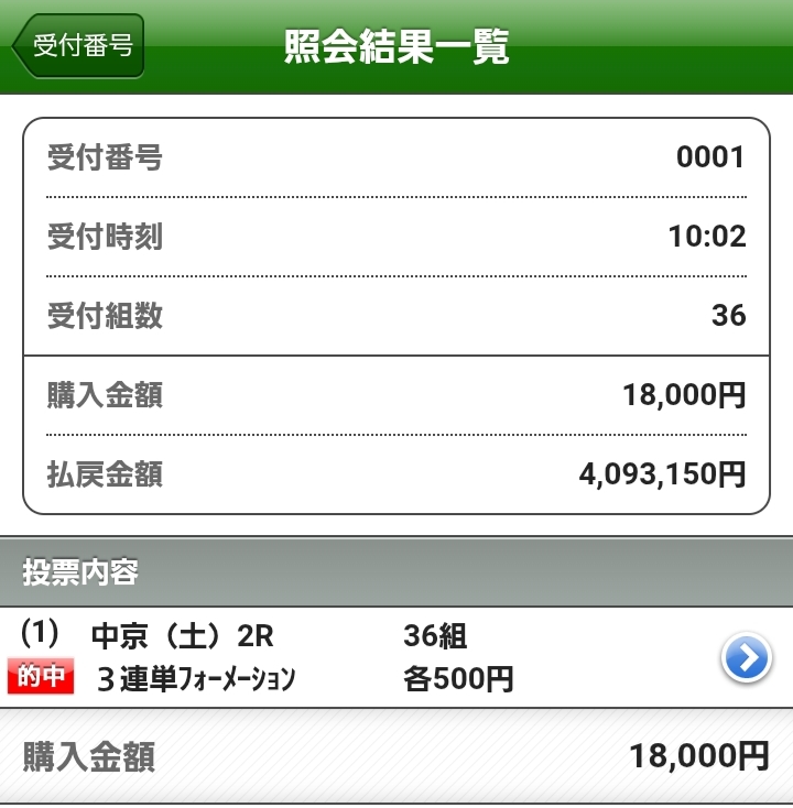 万馬券的中からの73,740円ゲットありがとうございました!!