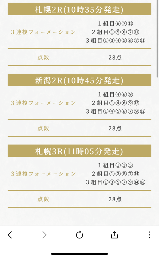 競馬リポート管理人さんから朝9時に紹介されたハーレム競馬の無料予想半端ないです! 一発目のレースギリギリになっちゃったけど札幌2R一発目から好配当58.1倍的中、次の新潟2Rは505.2倍ってかこの買い目で3連単買ってたら3262.2倍的中!! そして締め括る最後のレース札幌3Rでも好配当66.8倍的中!! 全部1点300円投資で18万9,030円払い戻しでした!! 朝から衝撃的過ぎ!!