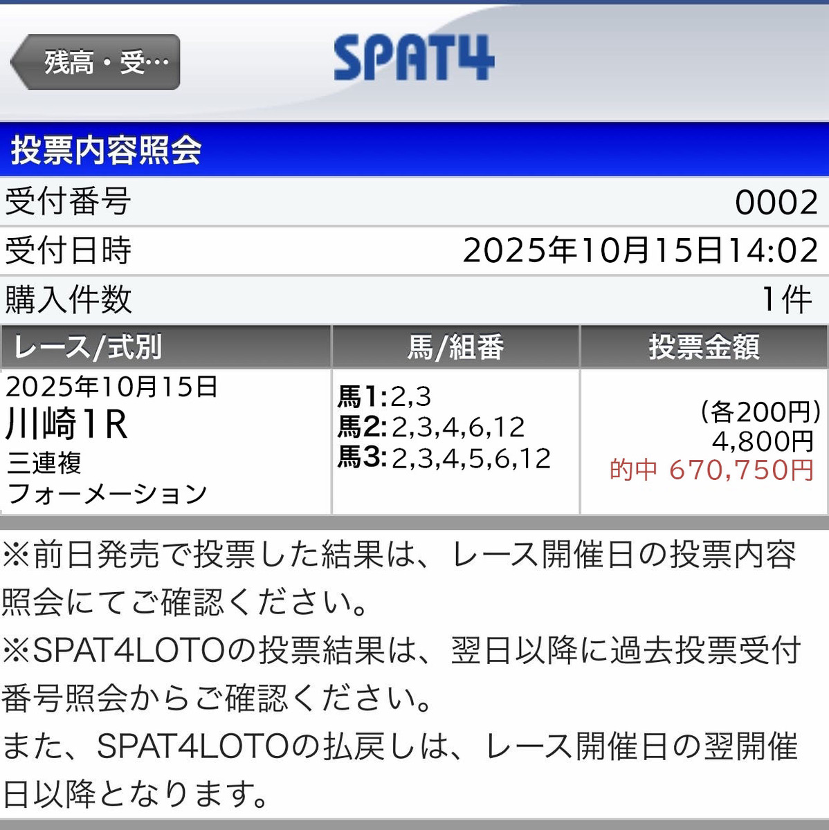 朝から3連複での無料予想【好配当】もらえました1点千円で厚く張ってたから9万1900円ゲット! アルテミスでも馬単万馬券当たってトータルで20万ちかく稼げた1日でした。 これもこの予想サイトのおかげだわ!