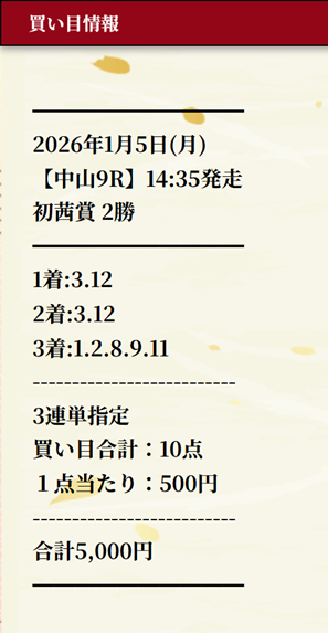 3-12-8で3連単637.1倍大当たり! 本当にお年玉レースだったです、最高に嬉しいし2026年新年一発目から好スタート切れました! 5千円の馬券代だけ用意すれば30万越え(318,550円)なんて10年前じゃ考えられなかった! 時代だなぁ~~