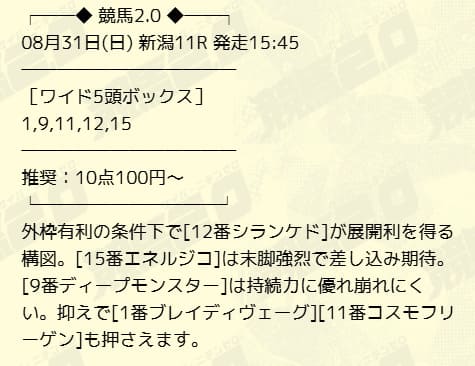 約束された万馬券の買い目が届く!