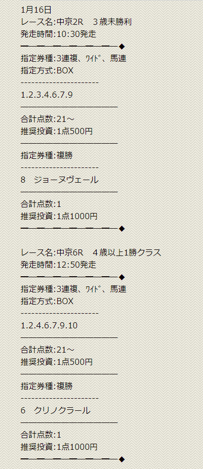 適当に人気馬並べてるだけの予想 ボックス予想で点数多過ぎ ほぼトリガミのふざけた情報 以上